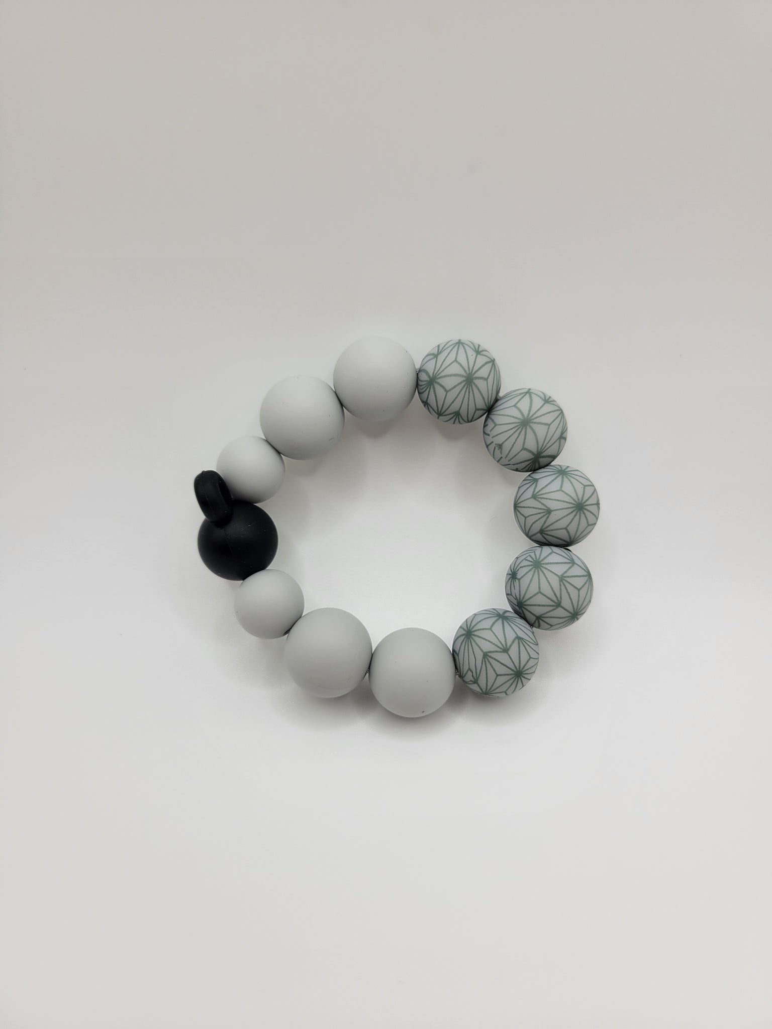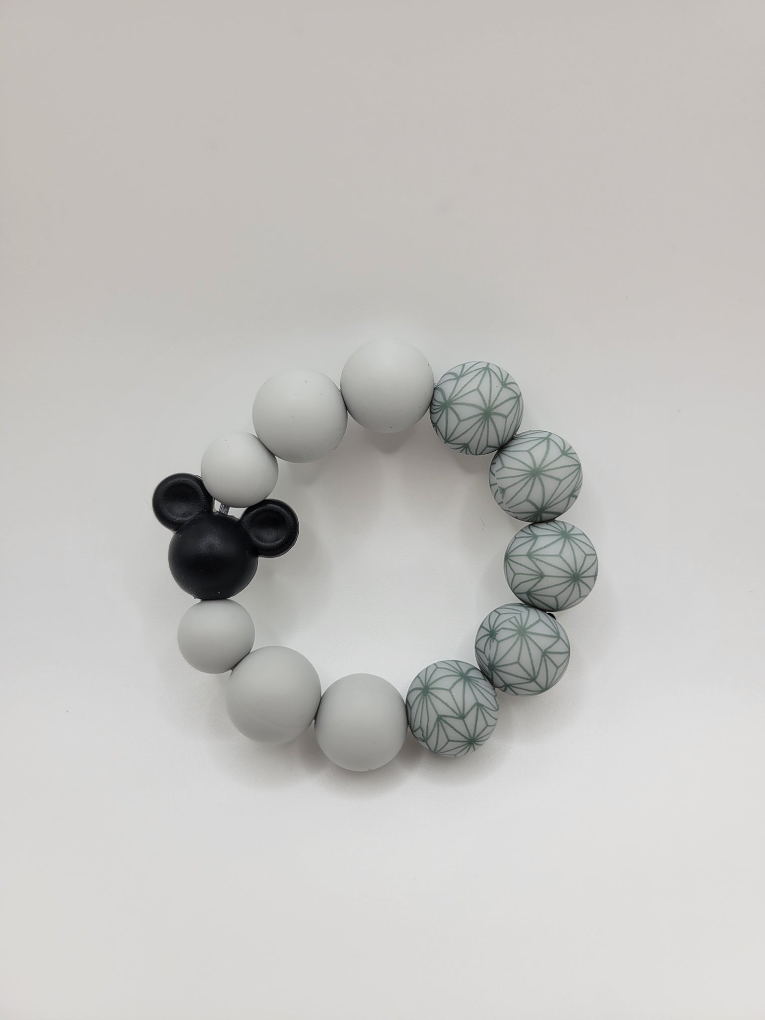 • Load image into Gallery viewer, Grey Geo Mouse Teething Ring